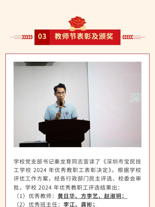 宝民技校庆祝第40个教师节暨优秀教职工表彰大会